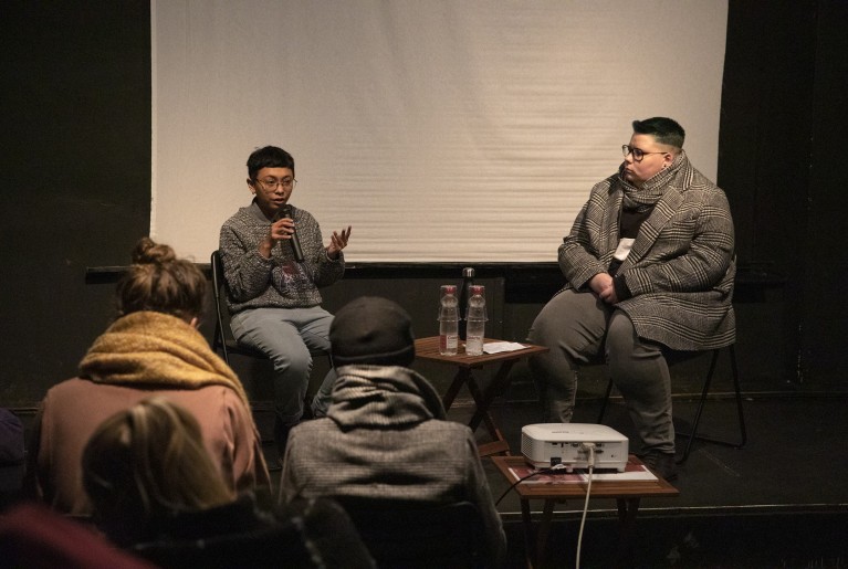 Galerija, Pogovor Pogovor s Kiki Febriyanti po projekciji filma Calalai: vmesnost pogovarja se Linn Julian Koletnik, foto: Jasna Klančišar in Maja Ličen